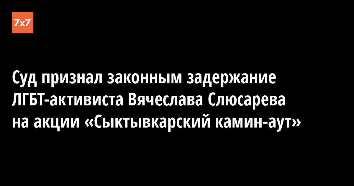 Городской суд 22 мая отказал ЛГБТ-активисту Вячеславу Слюсареву в иске к управлению МВД по Сыктывкару, в котором он требовал признать незаконными свое задержание и доставление в полицию за организацию и проведение акции «Сыктывкарский камин-аут», которая состоялась 11 октября 2018 года. Об этом корреспонденту «7х7» после заседания рассказал Слюсарев.