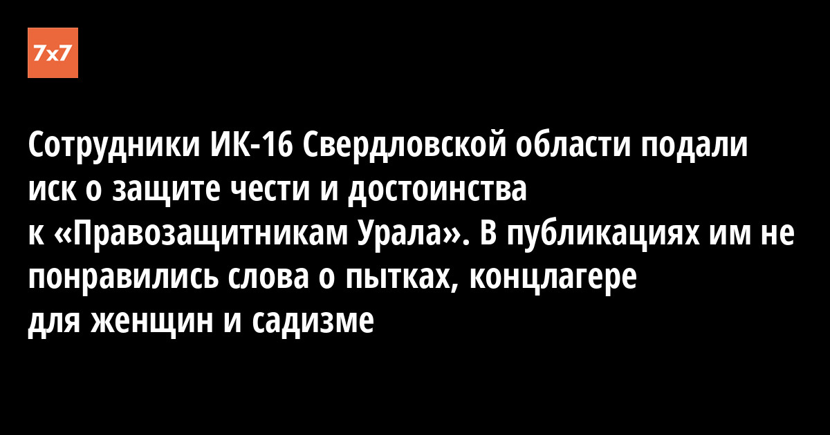 Исправительная колония №16 города Краснотурьинска ГУФСИН России по Свердловской области подала иск о защите чести и достоинства к правозащитнику Алексею Соколову и информационно-правовому сайту «Правозащитники Урала». Об этом 23 мая сообщил Соколов на странице Facebook.