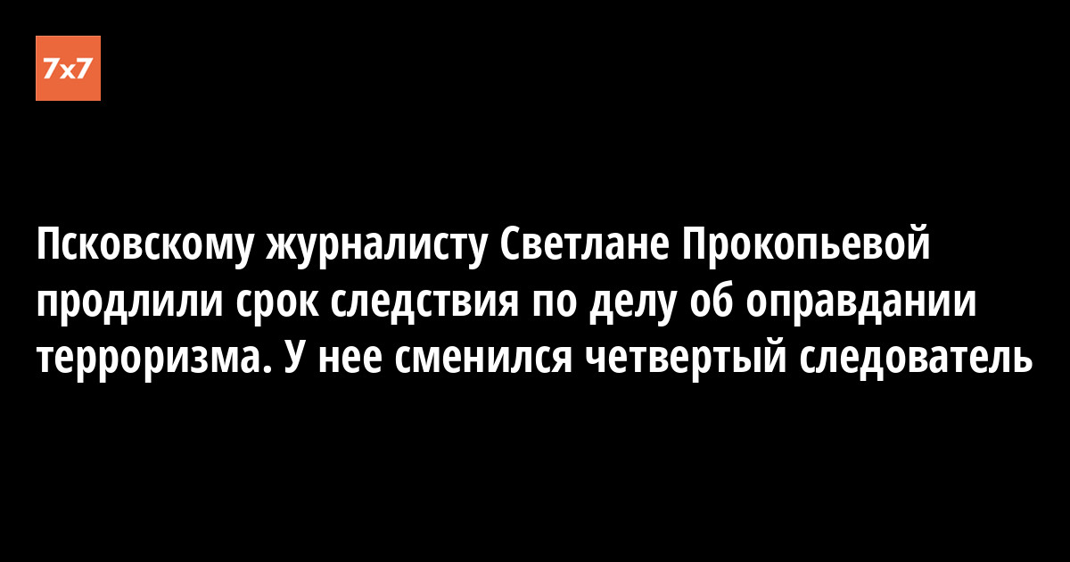 Псковскому журналисту Светлане Прокопьевой продлили срок следствия на три месяца и сменили четвертого следователя. Ее защита и следствие подготовили свои экспертизы. Об этом Прокопьева 3 июня написала в своем Facebook.