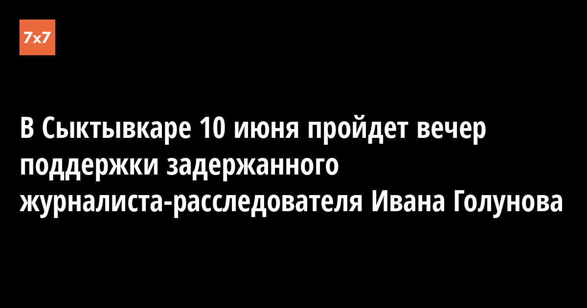 В Сыктывкаре вечером 10 июня, в понедельник, журналисты интернет-журнала «7x7» организуют вечер поддержки специального корреспондента «Медузы» Ивана Голунова, которого подозревают в распространении наркотиков в особо крупном размере.