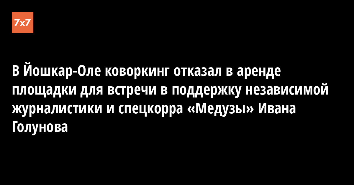 Йошкар-олинский коворкинг «Контора» 10 июня отказался предоставить местным журналистам помещение для проведения встречи в поддержку независимой прессы и спецкора «Медузы» Ивана Голунова, находящегося под домашним арестом по обвинению в сбыте наркотиков. Отказ пришел через бот Telegram-канала «МариЛэнд», где распространялось приглашение на встречу.