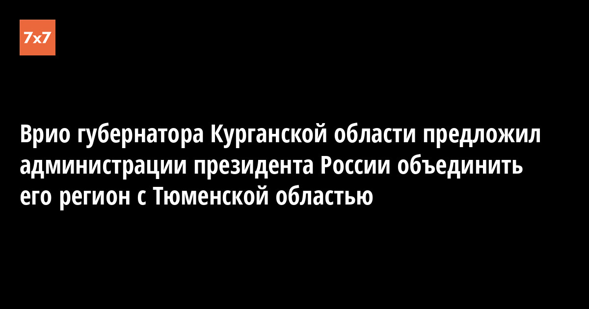 Временно исполняющий обязанности губернатора Курганской области Вадим Шумков направил в Кремль предложение объединить Курганскую область с Тюменской. Об этом 10 июня написал портал РБК со ссылкой на собственные источники.