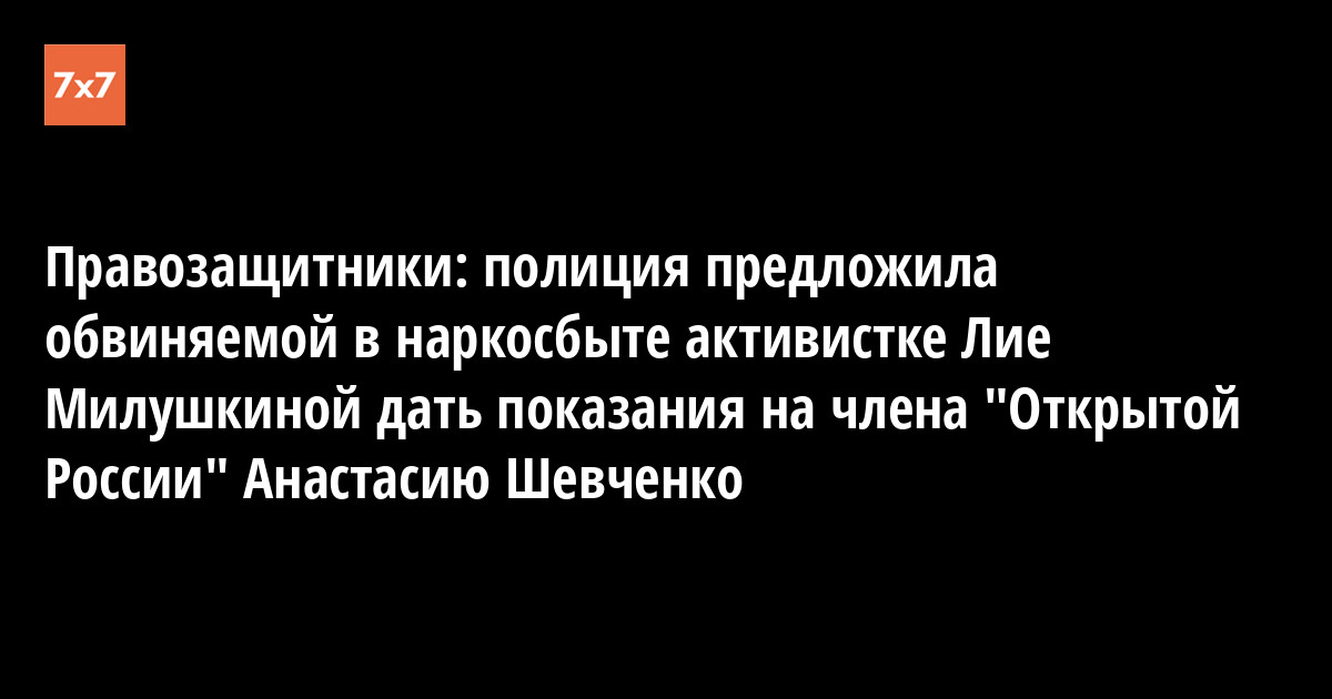 Экс-координатор движения «Открытая Россия» в Псковской области Лия Милушкина и фигурант дела о сбыте наркотиков отказалась давать показания на члена совета этой организации Анастасию Шевченко, которую обвиняют в сотрудничестве с нежелательной организацией в Ростове-на-Дону. Об этом 14 июня рассказали в Telegram-канале «Правозащита Открытки».
