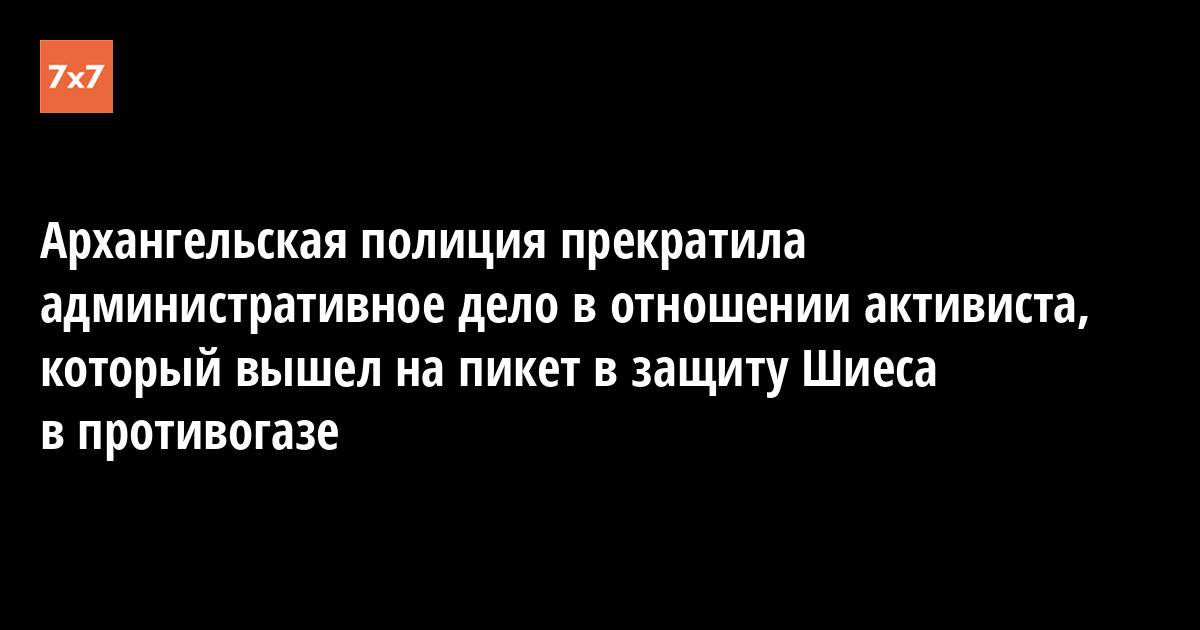Замначальника отдела обеспечения общественного порядка Управления МВД по Архангельску Алексей Огорелков прекратил административное дело против активиста Владимира Григорьева, который в мае вышел в костюме химической защиты с одиночным пикетом против строящегося мусорного полигона у станции Шиес. Об этом 17 июня сообщил Telegram-канал «Поморье — не помойка!».