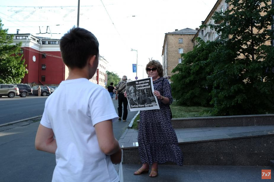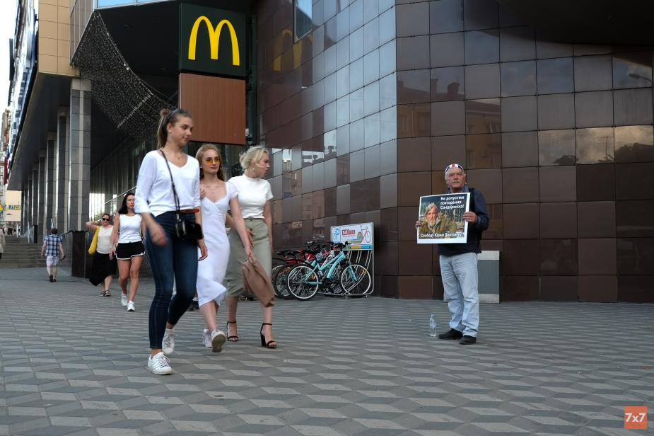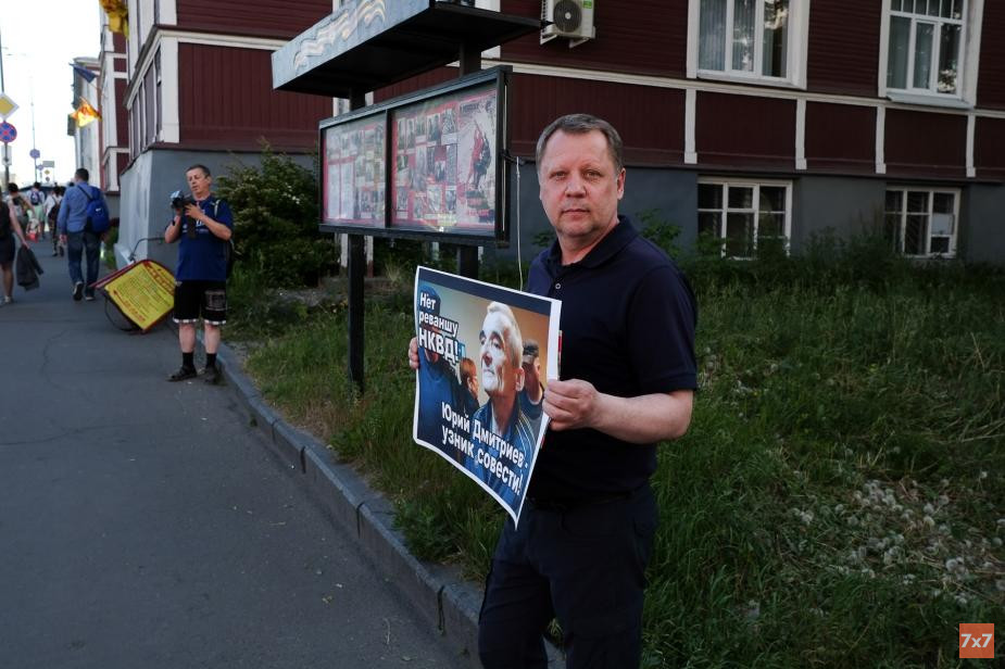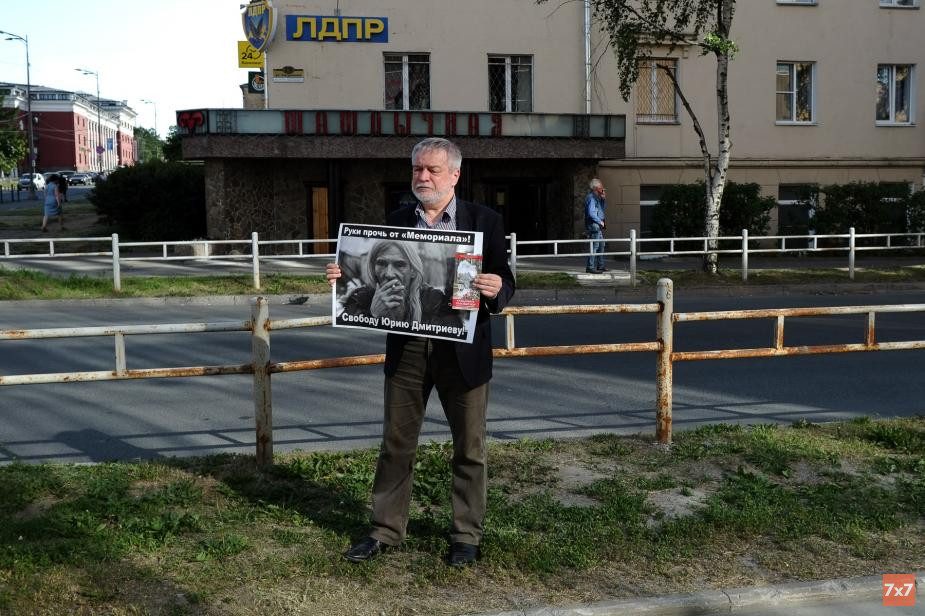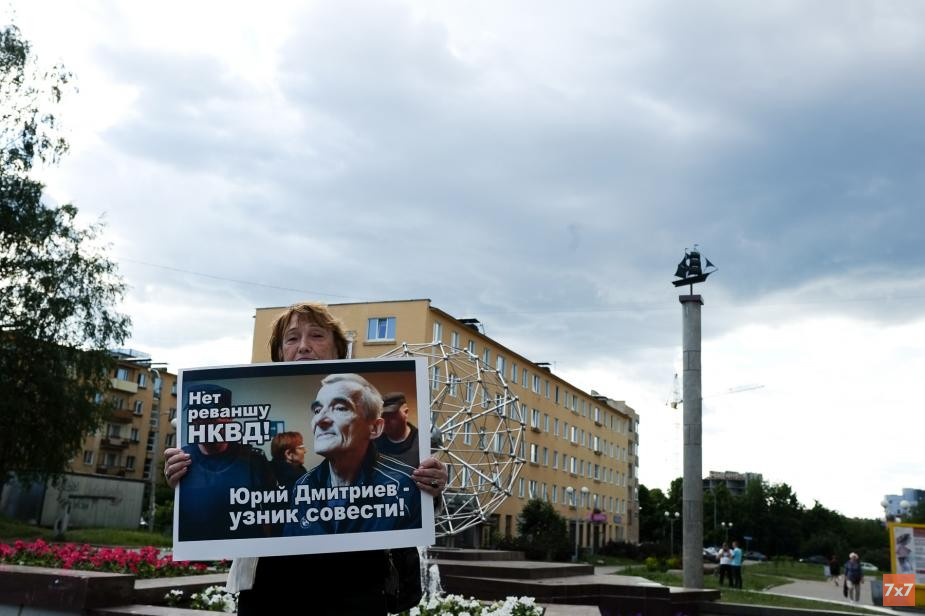 В центре Петрозаводска 18 июня состоялась серия одиночных пикетов в защиту карельского исследователя сталинских репрессий Юрия Дмитриева, которого обвиняют в насильственных действиях сексуального характера в отношении несовершеннолетнего, сообщил корреспондент «7x7».