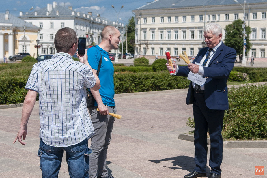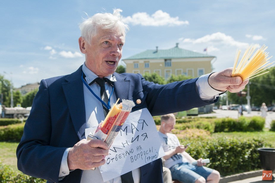 Член альтернативной общественной палаты Костромы (неформальная общественная организация) Виктор Епифанов 20 июня провел "прямую линию" с жителями и гостями города на Сусанинской площади, сообщил корреспондент «7х7». Активист отвечал на вопросы и раздавал лапшу.