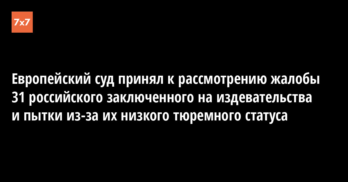 Европейский суд по правам человека принял к рассмотрению жалобы 31 гражданина России, которые сообщали об издевательствах и сексуальном насилии над ними от сокамерников из-за их низкого иерархического статуса в колониях. Об этом сообщил 27 июня правозащитный фонд «Общественный вердикт».