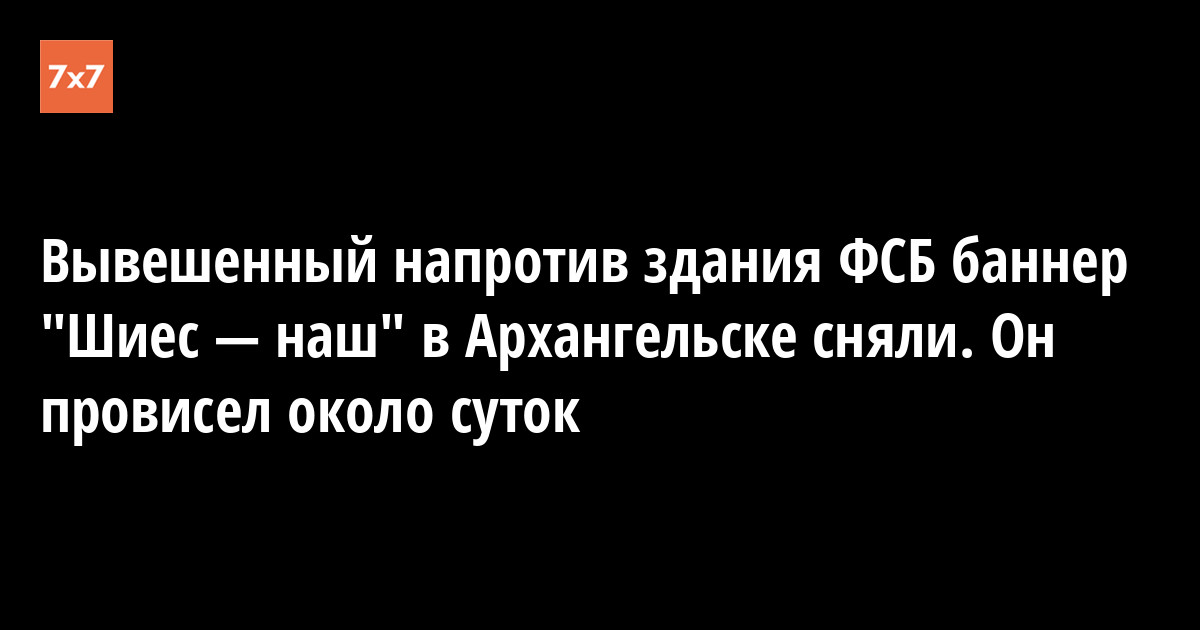 Баннер с надписью «Шиес наш. Русский Север — не помойка для Москвы», который заказал экоактивист Дмитрий Секушин, сняли. Это сделала компания «Северная медиагруппа», владеющая рекламным местом около здания управления ФСБ по Архангельской области. Об этом «7x7» 4 июля рассказал Секушин.