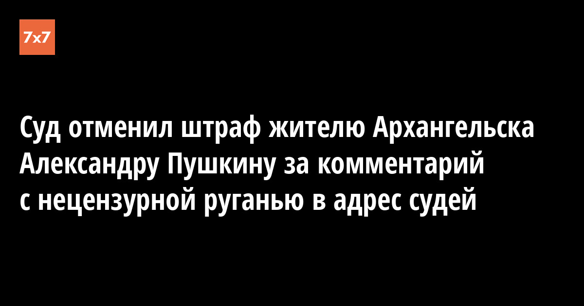 Судья Октябрьского районного суда Архангельска не стал наказывать жителя Архангельска Александра Пушкина из-за комментария в группе «Поморье — не помойка!». Пушкин написал «Судьи вы че *****?». Об отмене штрафа сообщил 9 июня Telegram-канал экоактивистов.