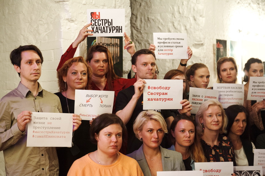 Крестина, Ангелина и Мария Хачатурян обвиняются в убийстве отца Михаила Хачатуряна по предварительному сговору (пункт «ж» части 2 статьи. 105 Уголовного кодекса РФ). Статья предусматривает наказание от 8 до 20 лет лишения свободы. Защита утверждает, что девушки оказались в безвыходной ситуации из-за продолжительного домашнего насилия и принуждения к сексуальным действиям. На момент совершения преступления им было 19, 18 и 17 лет соответственно. Дело вызвало широкий общественный резонанс, в регионах России прошли пикеты за смягчение приговора девушкам и изменение законодательства в вопросах насилия.