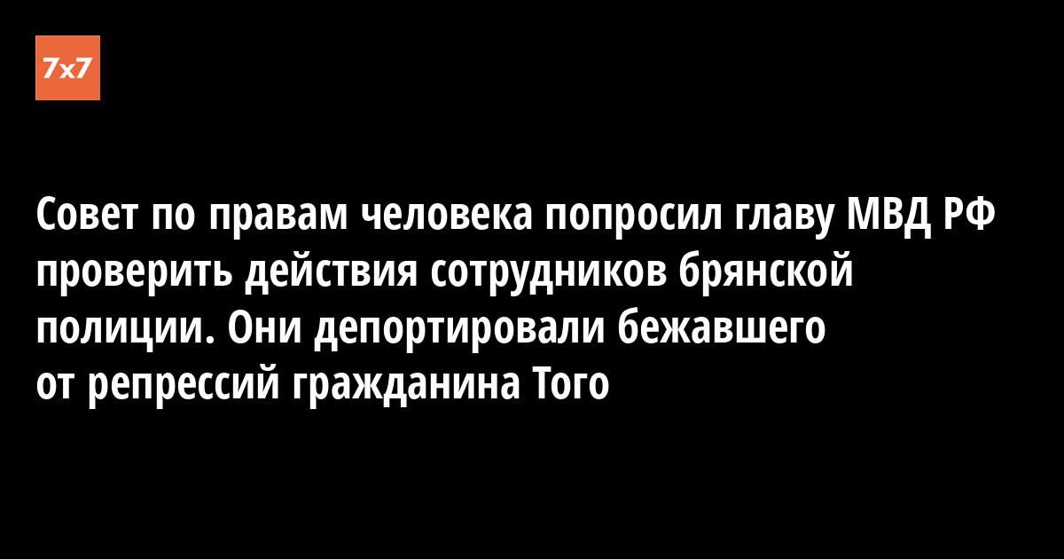 Совет по правам человека при президенте России попросил министра внутренних дел Владимира Колокольцева проверить действия сотрудников брянской полиции, депортировавших гражданина Республики Того Бозобэйиду Батому. Об этом 10 июля сообщила пресс-служба СПЧ.