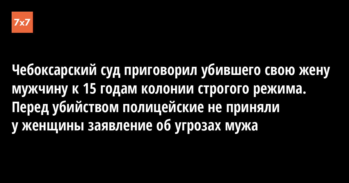 Верховный суд Чувашии приговорил местного жителя Александра Ануфриева к 15 годам лишения свободы в колонии строгого режима за убийство жены. За день до трагедии женщина обращалась в полицию с заявлением об угрозе убийством, но сотрудники полиции не стали возбуждать уголовное дело, хотя Ануфриев был ранее судим за двойное убийство при отягчающих обстоятельствах. Об осуждении Ануфриева корреспонденту «7x7» 11 июля сообщил представитель «Зоны права» Булат Мухамеджанов.