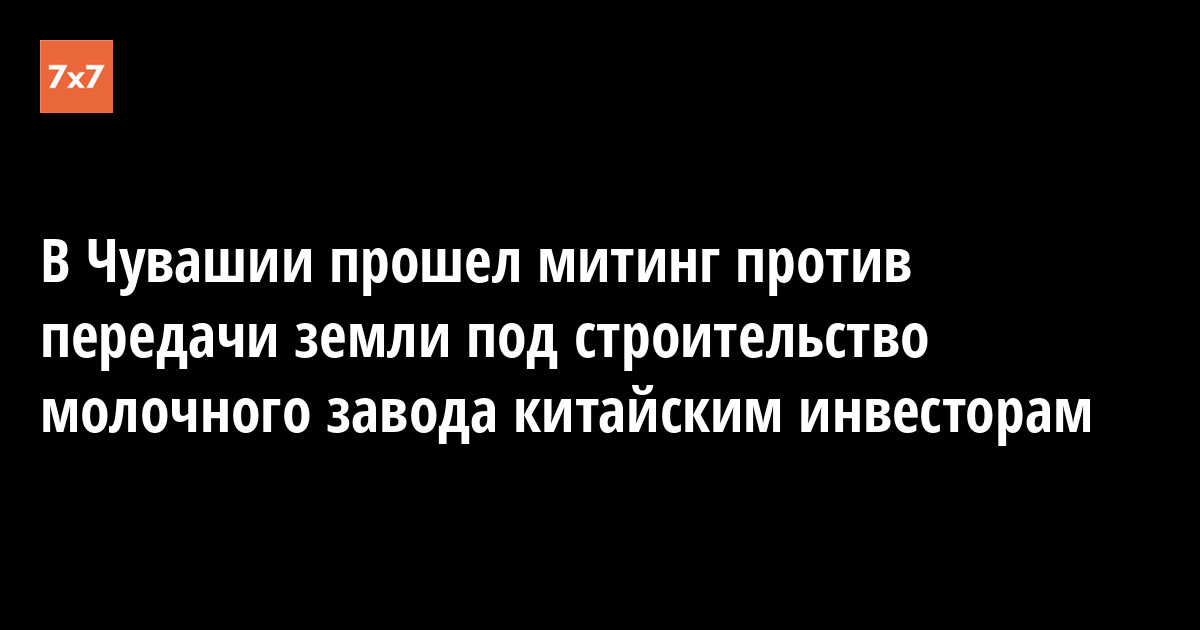 Митинг против строительства китайского молочного завода вблизи деревни Ильбеши прошла в поселке Кугеси Чебоксарского района Чувашии 13 июля. В нем участвовали около 300 человек, сообщил корреспондент «7x7». Организатором митинга выступило региональное отделение КПРФ.