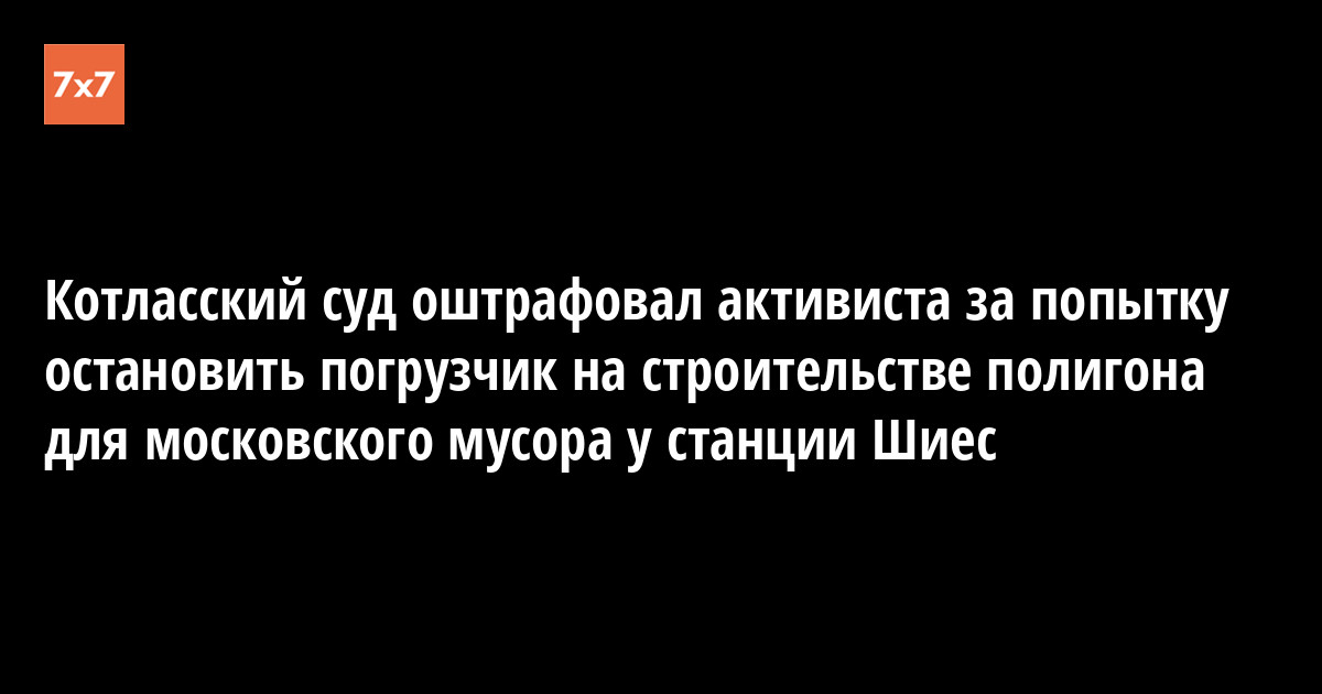 Котласский городской суд оштрафовал на 10 тыс. руб. активиста Станислава Мокрецова за то, что он пытался остановить погрузчик на стройплощадке мусорного полигона у железнодорожной станции Шиес в Ленском районе Архангельской области. Об этом 15 июля сообщил Telegram-канал «Поморье — не помойка!».