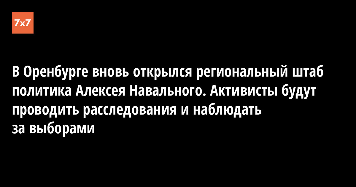 В Оренбурге вновь начал работу региональный штаб политика Алексея Навального. Об этом 16 июля корреспонденту «7×7» сообщил координатор штаба Евгений Невечеря.