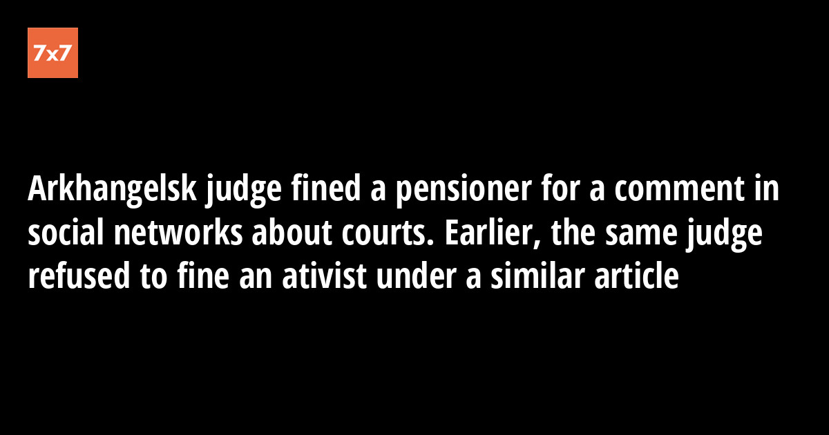 Judge of the Octyabrsky district court of Arkhangelsk Sergey Yarmolyuk fined pensioner Elena Makarova for 30 thousand roubles because of "disrespect" for the police and judges for a comment after an unauthorized rally on April 7 in Arkhangelsk. Previously, he refused to fine local resident Alexander Pushkin on a similar article due to the fact that it violated to the Constitution of Russia. This information was confirmed on July 19 to the correspondent of "7x7" by Makarova’s defender Alexey Kuroptev, cooperating with International Agora.