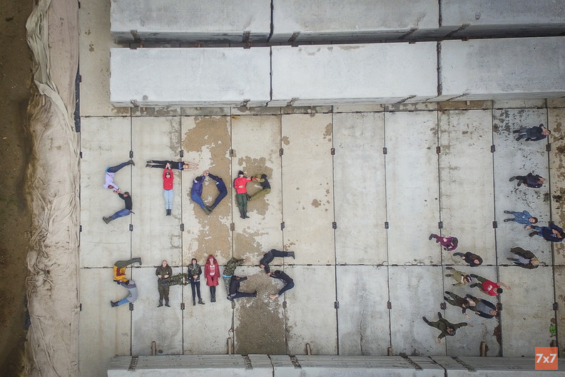 Всего в акции участвовали 30 человек, 18 из них образовали надпись из своих тел.