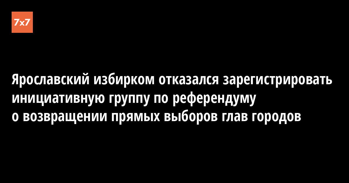 Избирательная комиссия Ярославской области отказала активистам Либертарианской партии России и регионального штаба политика Алексея Навального в регистрации инициативной группы для проведения референдума по вопросу возвращения прямых выборов мэра Ярославля из-за неточности в поданном ходатайстве. Об этом 24 июля «7x7» рассказал представитель группы Александр Баикин.