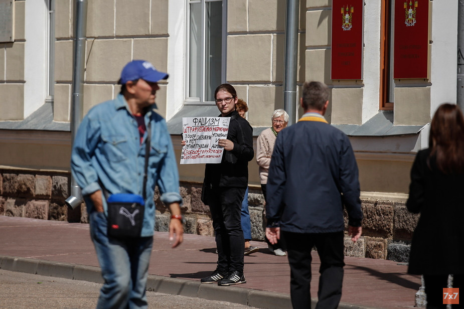 — Произошедшее на протестах со стороны силовиков 27 июля и 3 августа в Москве — фашизм. Избивали мирных граждан и задерживали незаконно. Фабрикуют уголовные дела для того, оправдать чтобы количество задержанных. Сажают невиновных ребят. Я вышел в поддержку невиновного арестованного Егора Жукова, как и остальных политзаключенных. И вышел пикетировать, так как штраф за мем с Путиным в 30 тысяч рублей — тоже фашизм, — рассказал «7х7» Командиров.