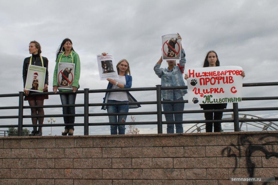 A mass picket in protection of circus animals took place in Nizhnevartovsk Hyde Park — in the amphitheater on the embankment of the Ob river. It was organized by activist Evgenia Aglotkova, reported the correspondent of "7x7".