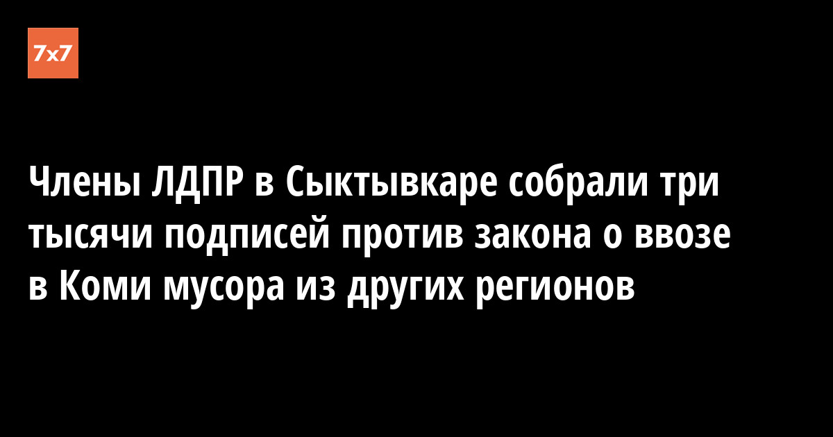 Активисты молодежной организации регионального отделения ЛДПР собирали подписи против принятия закона, который позволит завозить в Республику Коми мусор из других регионов. Об этом «7х7» 13 августа рассказал координатор Коми отделения партии Роман Нараб.