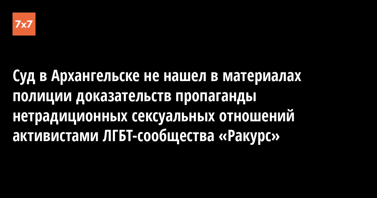 В Архангельске Октябрьский районный суд вернул в полицию протокол на арендатора помещения для ЛГБТ-сообщества «Ракурс». Об этом 19 августа сообщили в Российской ЛГБТ-сети.