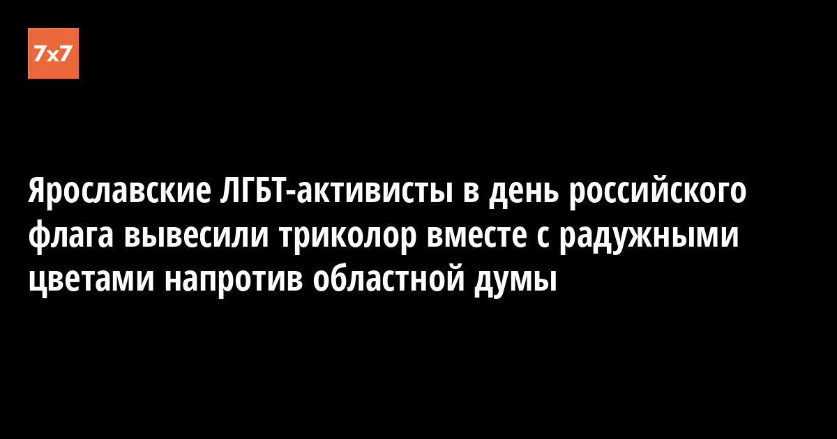 Активист ярославского Альянса гетеросексуалов и ЛГБТ Алан Ерох 22 августа в День российского флага вывесила рядом с областной думой радужный флаг вместе с триколором. Об этом написали в сообществе Альянса «ВКонтакте».