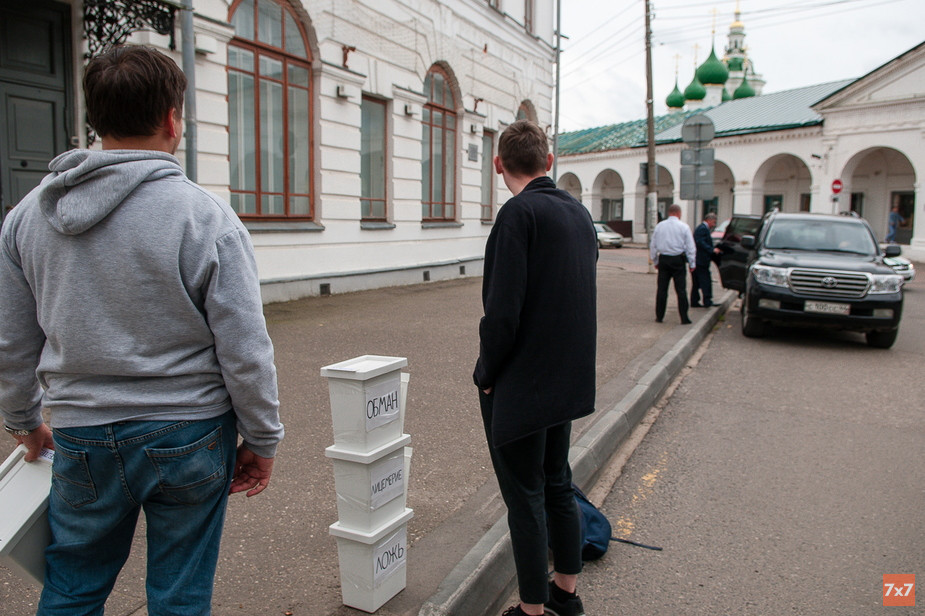 Во время проведения акции из здания вышел председатель областной думы Алексей Анохин, сел в машину и уехал.