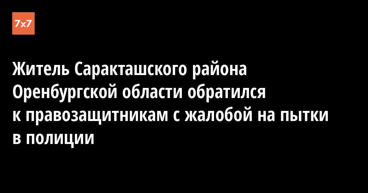 Житель поселка Черный Отрог Саракташского района Оренбургской области Роман Чиквиладзе обратился в региональное отделение Комитета против пыток с заявлением о том, что полицейские пытали его в помещении Черноотрожского сельсовета. Об этом 26 августа сообщил сайт правозащитной организации.