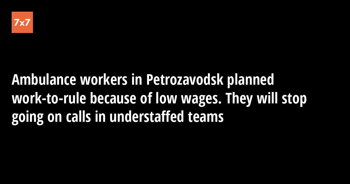 Some of the drivers, hospital attendants, and paramedics of the ambulance station in Petrozavodsk will stop going on calls in understaffed teams. They planned a work-to-rule because of low wages and lack of health workers at the stations. The emergency hospital administration responded with a "letter from colleagues condemning the rioters." On August 28, this information was confirmed to "7x7" by the Chairman of the primary organization of trade Union Deystvie (Action) of the emergency hospital in Karelia Olga Chayka.