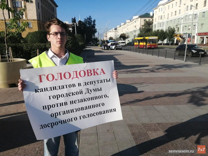 Восьмерых независимых кандидатов в депутаты Пензенской городской Думы сотрудники полиции задержали на площади Ленина вечером 3 сентября. Они ссылались на нарушения правил проведения публичного мероприятия. Кандидаты вышли в одинаковых ярко-зеленых жилетах с надписями «Голодовка» и «За честные выборы». Они голодали в знак протеста против фальсификаций на досрочных выборах.