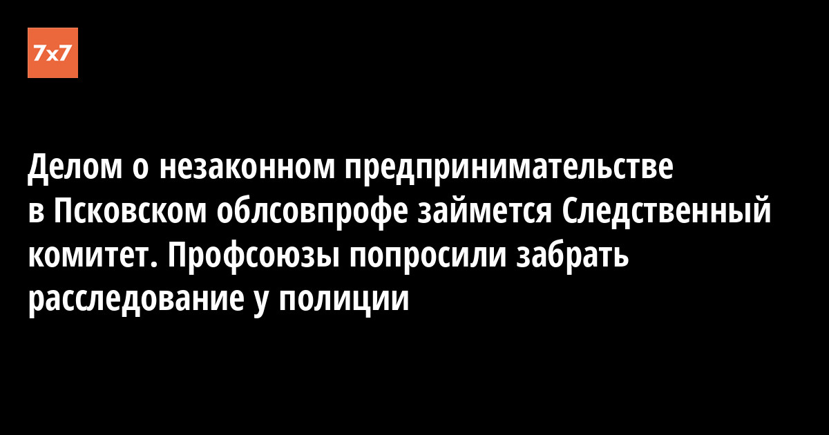 Прокуратура Псковской области 6 сентября передала уголовное дело по факту незаконной предпринимательской деятельности в профсоюзной гидрохимической лаборатории из регионального УМВД в Следственный комитет. Об этом корреспонденту «7x7» рассказала председатель регионального совета профсоюзов, депутат облдумы Ульяна Михайлова.