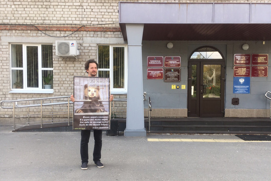 For half an hour from 13:30, Sergey Safroniy, the leader of the group of assistance to street animals, stood in front of the city hall with a poster, which depicted a bear in a cage, with the inscription: "Why?" and Andrey Dementyev's quatrain pitying animals in circuses and asking people to be kinder.
