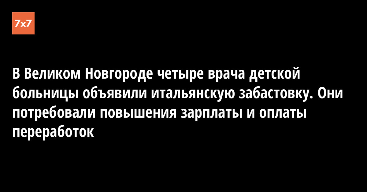 Медики четырех отделений Областной детской клинической больницы в Великом Новгороде объявили об итальянской забастовке. Они будут выполнять свои обязанности только в соответствии с пунктами трудового договора. Об этом сообщили в группе независимого профсоюза «Альянс врачей» 13 сентября.