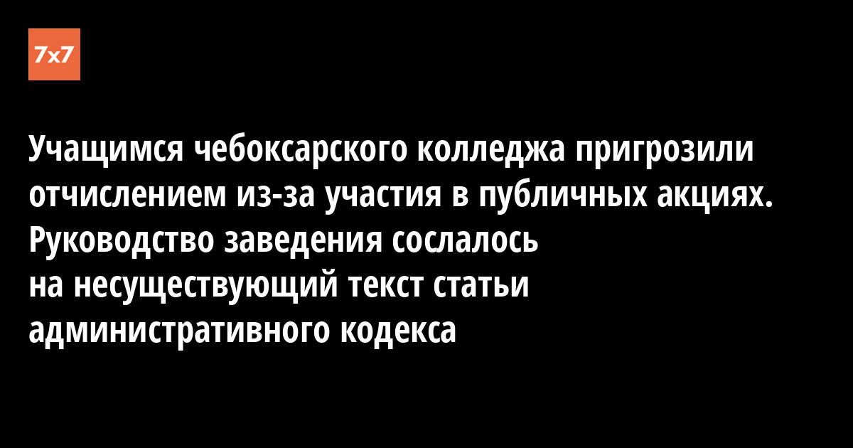 Администрация Чебоксарского электромеханического колледжа потребовала от учащихся подписать документ, подтверждающий ознакомление с внутренними правилами колледжа, среди которых есть прямой запрет на участие студентов в любых публичных акциях (в том числе санкционированных). Скан документа 23 сентября опубликовало издание «Идель.Реалии».