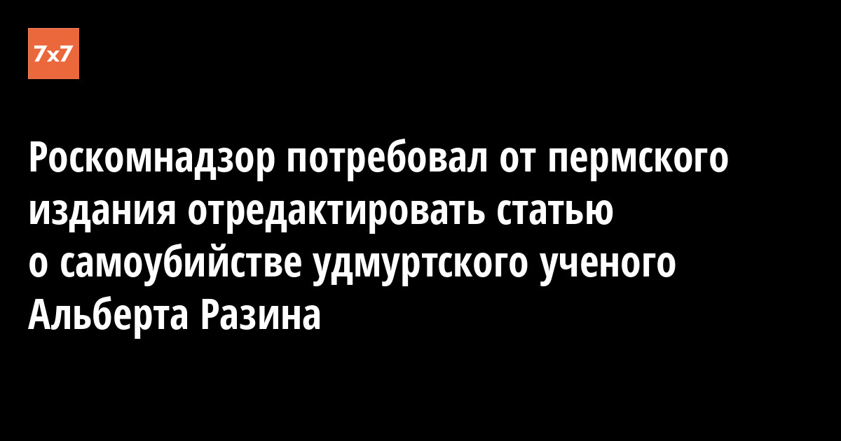 Пермское СМИ «Четвертый сектор» отредактировало статью о самоубийстве удмуртского ученого Альберта Разина после письма из Роскомнадзора (РКН). Проверяющие увидели способ совершения самоубийства в синониме этого существительного. Об этом 2 октября «7х7» рассказала учредитель «Четвертого сектора» Анастасия Сечина.