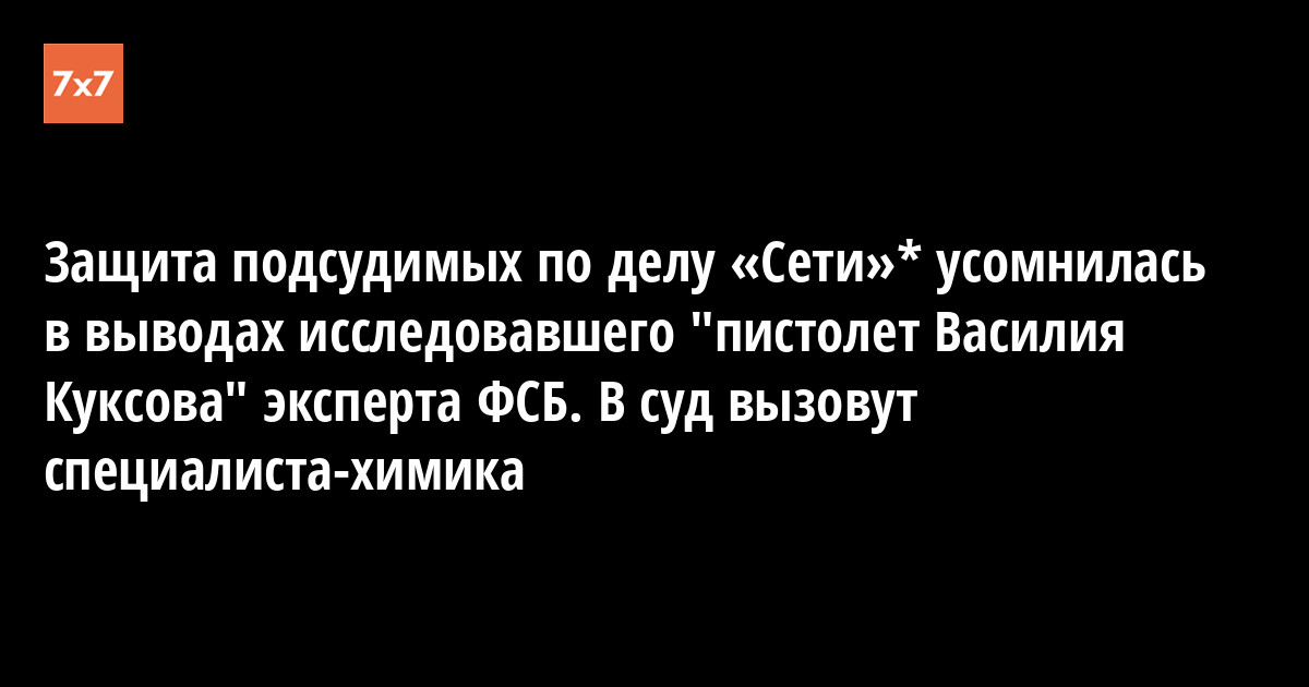 В суде по делу о террористическом сообществе «Сеть»* в Пензе эксперт-баллист ФСБ Владимир Крылков, который исследовал "пистолет подсудимого Василия Куксова", заявил о «технической ошибке» и переадресовал все вопросы «специалистам-химикам». Об этом стало известно на заседании 17 октября, сообщил корреспондент «7х7». Подсудимый и его защита заявили, что этот пистолет Куксову подбросили .