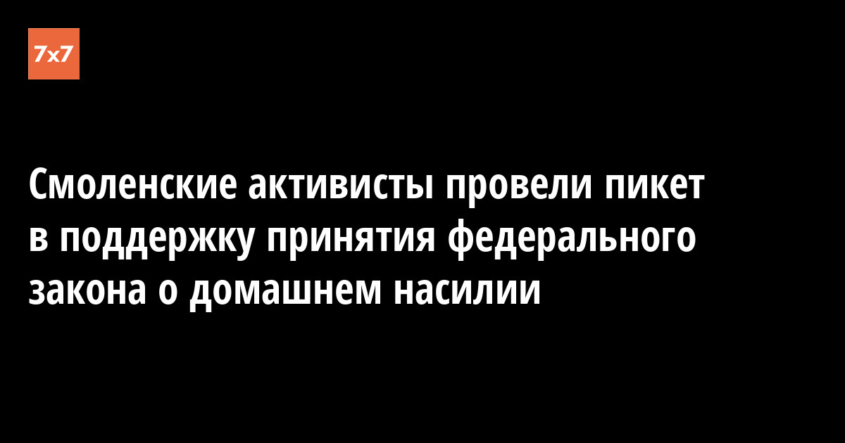 Пикет в поддержку федерального закона о профилактике домашнего насилия прошел в Смоленске 24 ноября — накануне международного дня борьбы за ликвидацию насилия в отношении женщин. Смоляне решили поддержать инициативу независимой организации социалистических феминисток «СоцФем Альтернатива». Об этом сообщил паблик «Женское дело | Смоленск».