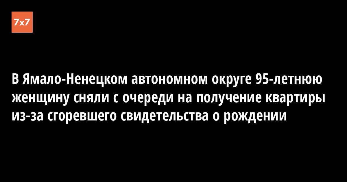 Год назад 95-летняя жительница села Находка Пугочине Ядне подала документы, чтобы встать в очередь на квартиру, но из-за отсутствия свидетельства о рождении ее сняли с очереди, сообщило новостное агентство Ямала N24.RU