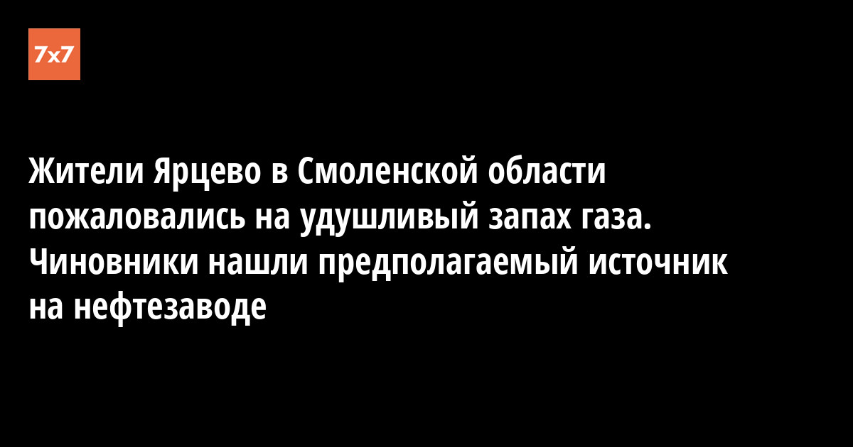 Жители Ярцево Смоленской области массово пожаловались на удушливый запах газа в городе в районе улиц Ленинская, Пугачева, Луначарского. По предварительной версии, произошел выброс с нефтеперерабатывающего завода на территории бывшего Ярцевского хлопчатобумажного комбината (ХБК). Об этом корреспонденту «7х7» 4 декабря рассказал главред ярцевской газеты «Сигма Плюс» Дмитрий Сатанов.