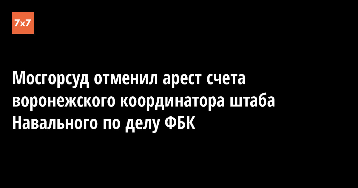 Московский городской суд признал незаконным арест счета воронежского координатора штаба Навального Георгия Бородина. Эту информацию 5 декабря подтвердил «7x7» сам активист.
