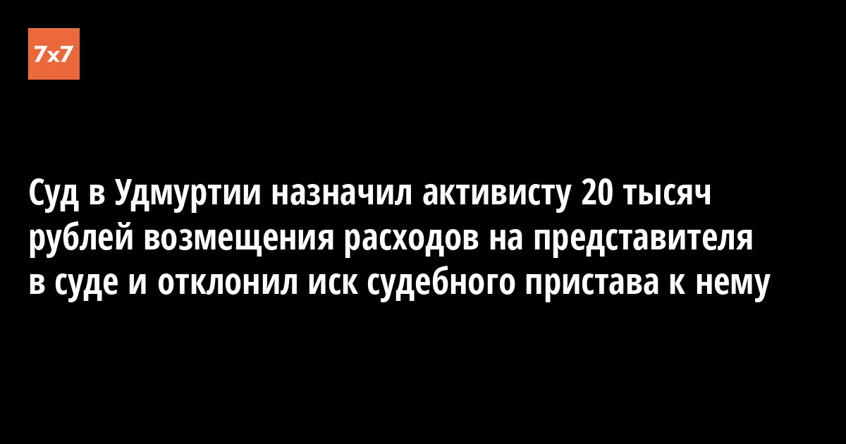 Воткинский городской суд отклонил иск судебного пристава к активисту Михаилу Соколову и принял решение о возмещении активисту 20 тыс. руб. расходов на представителя в суде, сообщил 4 декабря корреспондент "7х7".