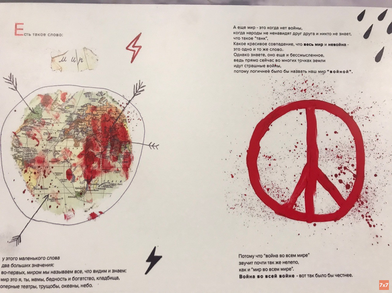 Есть также комиксы-размышления, среди которых — антимилитаристское высказывание художницы Дианы Кавелиной «Книга, которая ничего не изменит».