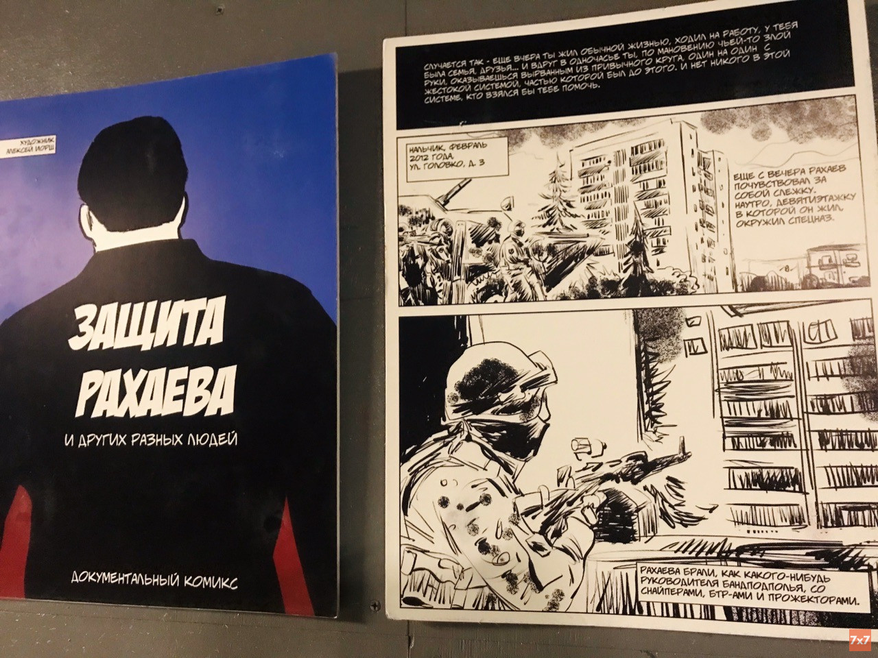 Например, работа художника Алексея Иорша «Защита Рахаева и других разных людей» рассказывает историю экс-начальника уголовного розыска г. Черкесска, капитана полиции Руслана Рахаева. Его родственники обратились в «Общественный вердикт» в октябре 2012 года. Рахаева обвиняли в умышленном причинении тяжкого вреда здоровью, повлекшего смерть потерпевшего. По версии следствия, полицейский до смерти избил задержанного в ОВД. Еще один комикс Иорша — «Страх и ненависть в Ярославле» — рассказывает о пытках заключенных в ярославских колониях и работе организации «Общественный вердикт» по защите прав пострадавших.