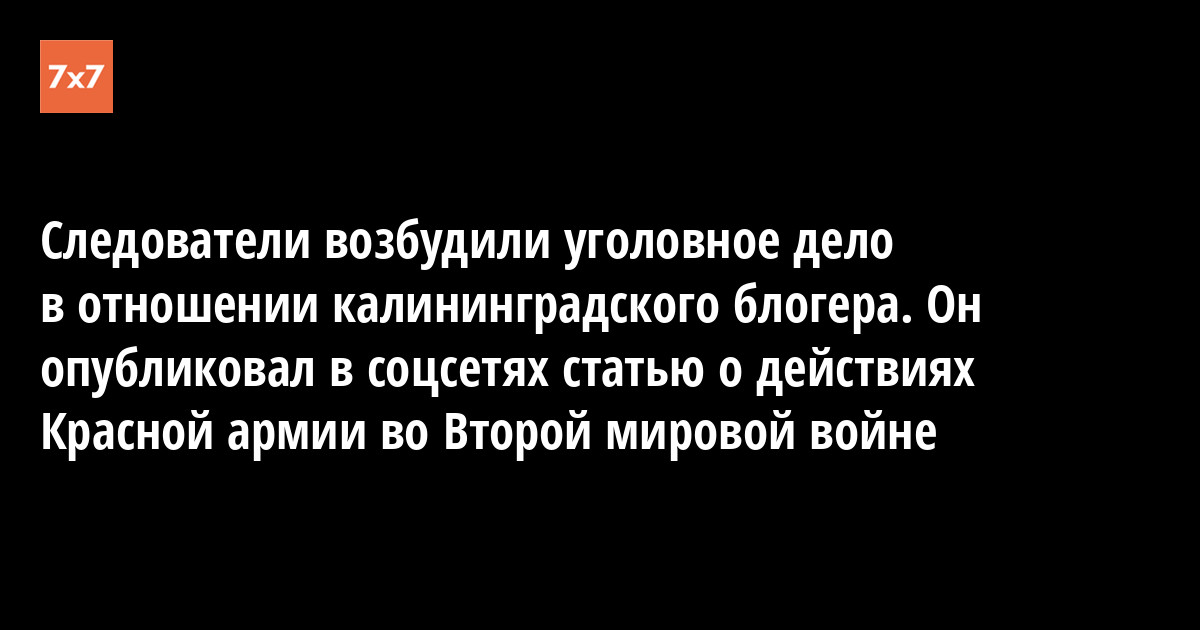 Калининградский Следком возбудил уголовное дело по части 3 статьи 354.1 УК РФ («Распространение выражающих неуважение сведений о памятных датах») против опубликовавшего пост на своей странице в социальной сети «ВКонтакте» местного блогера Николая Горелова (Кириченко). Об этом корреспонденту «7х7» рассказал 10 января сам Горелов. В декабре СК отказался заводить дело в отношении него.