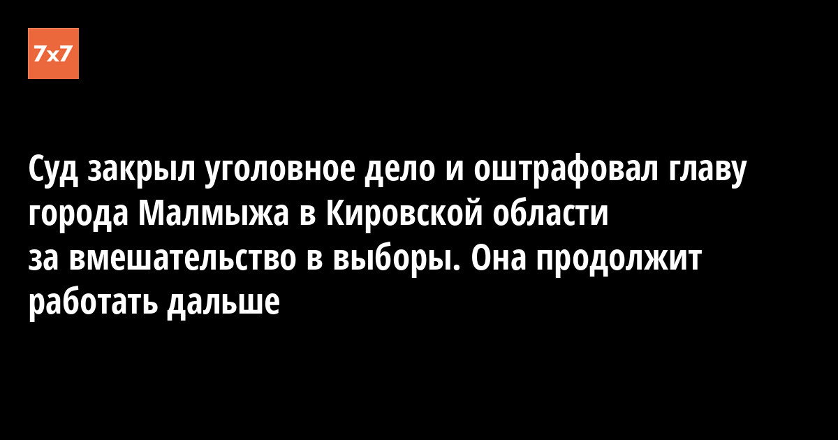 Малмыжский районный суд Кировской области прекратил уголовное дело против главы города Малмыжа Оксаны Алешкиной за вмешательство в работу избирательных комиссий, из-за которого члены участковых комиссий пошли на фальсификацию результатов местного референдума. Об этом 29 января написал координатор движения «Голос» в Кировской области Денис Шадрин.