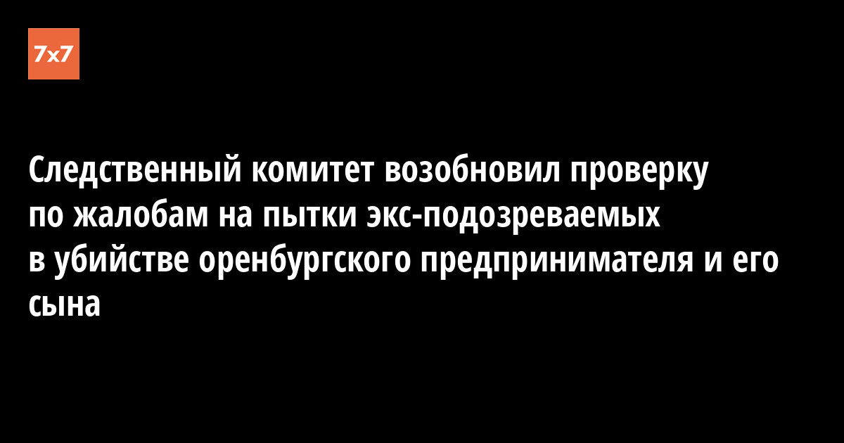 Следственный комитет России возобновил проверку по жалобам на пытки в УМВД по Оренбургской области троих бывших подозреваемых в убийстве оренбургского предпринимателя Дениса Чернова и его несовершеннолетнего сына. Об этом 30 января сообщила пресс-служба Комитета против пыток.