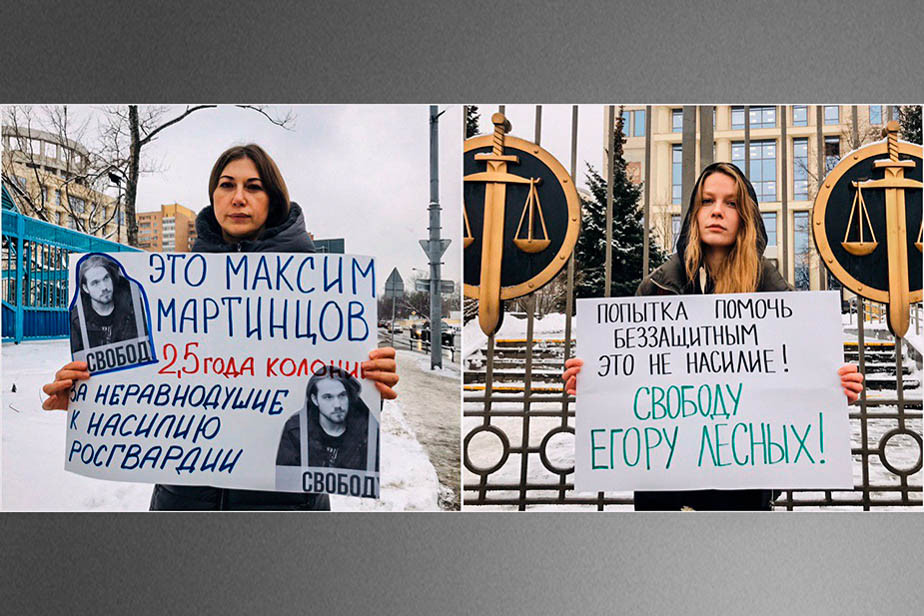 Перед началом рассмотрения жалобы у здания суда прошли одиночные пикеты в поддержку Максима Мартинцова и Егора Лесных.
