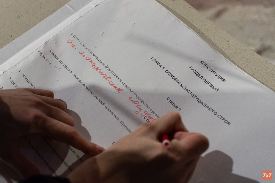 Самыми популярными у прохожих оказались статьи о социальных гарантиях, например о гарантиях на бесплатное жилье. Молодой мужчина, который тоже пришел на акцию, записал в первой статье «проекта Конституции», что Россия — это монархическое государство с федеративным устройством.