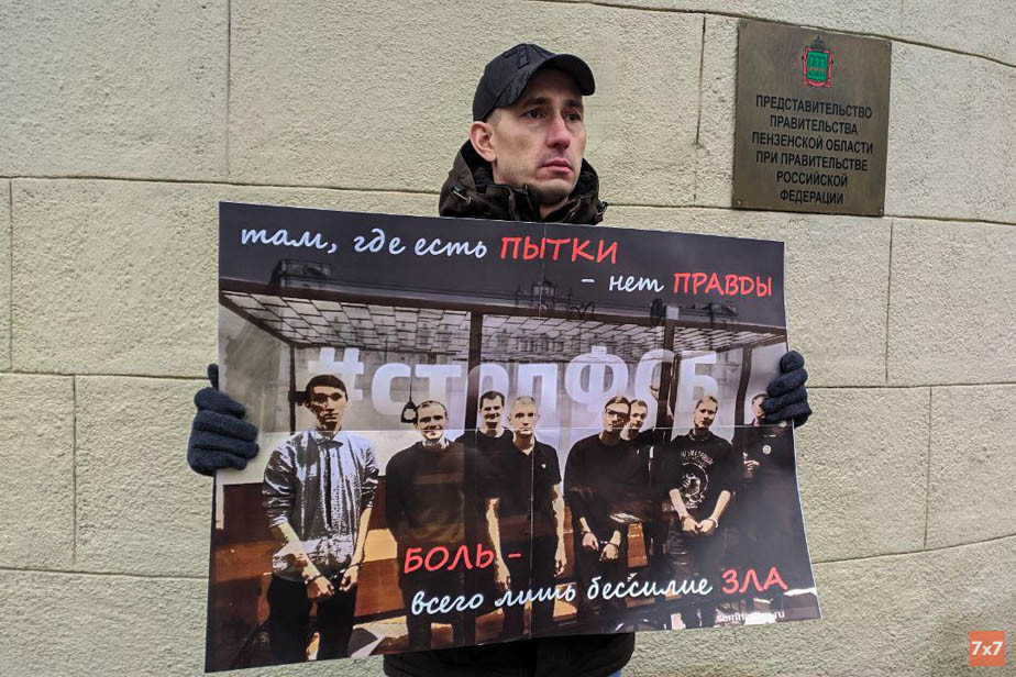 Активисты «Бессрочного протеста» 12 февраля провели в Москве серию одиночных пикетов у представительства правительства Пензенской области при правительстве РФ. В своем Telegram-канале они написали, что выступили в поддержку фигурантов дела «Сети»* и против полицейского произвола.